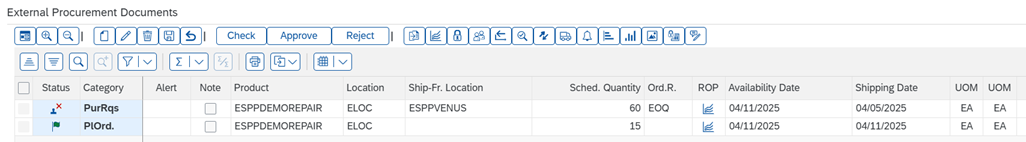 Con un déficit restante de 25 unidades y agotada la opción de reparación, SAP eSPP activa la compra de nuevas piezas ESPPDEMOBUY.