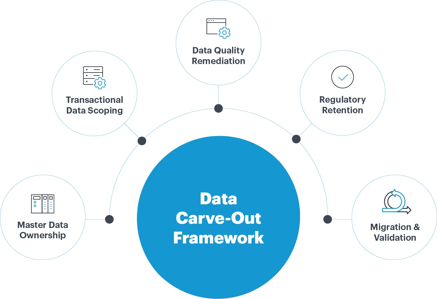 Data is often the most complex aspect of divestiture. Master data may be shared, financial history intertwined, and regulatory constraints may require certain data to remain accessible to both parties.
