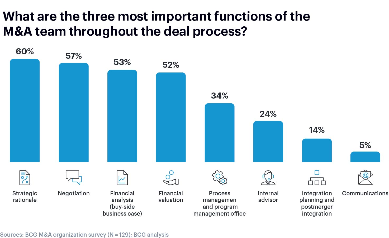 Despite best intentions, M&A initiatives continue to be driven primarily by financial and legal considerations. Integration planning – particularly for IT and operations – is postponed until the end of the process, when key decisions have already been made. This imbalance is reflected in recent research by Boston Consulting Group. A BCG M&A organisation survey (2024) shows that deal teams prioritise strategic rationale (60%), negotiation (57%), and financial analysis and valuation (53% and 52%), while integration planning and post-merger integration are considered a top priority by only 14% of respondents. Communications rank even lower, at just 5%. This highlights a persistent gap between deal execution and integration readiness.